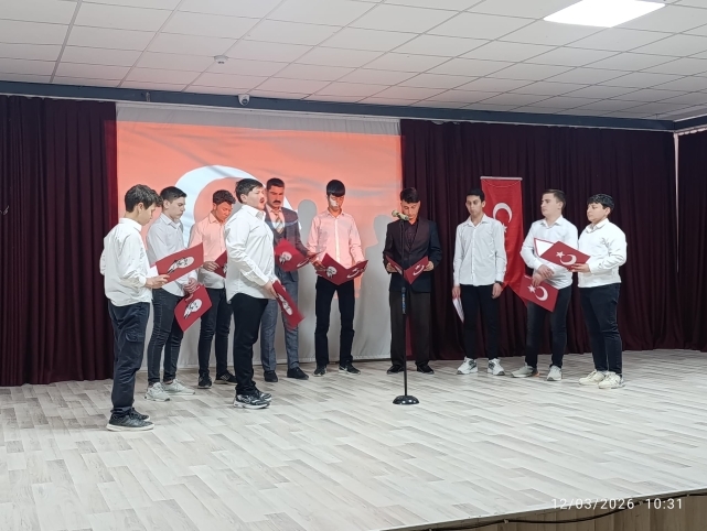 12 Mart İstiklal Marşı’nın Kabulü ve Mehmet Akif Ersoy’u Anma Günü Programı Gerçekleştirildi12 Mart İstiklal Marşı’nın Kabulü ve Mehmet Akif Ersoy’u Anma Günü dolayısıyla ilçemizde anlamlı bir program düzenlendi. Programa Kaymakamımız Sayın Enis AKDAĞOĞLU, Belediye Başkanımız Sayın Seyhan KILINÇARSLAN, İlçe Milli Eğitim Müdürümüz Mustafa KOÇAK, protokol üyeleri, okul müdürleri, öğretmenler ve öğrenciler katıldı.Program, saygı duruşu ve İstiklal Marşı’nın okunmasıyla başladı. Günün anlam ve önemine dair yapılan konuşmaların ardından öğrenciler tarafından hazırlanan tiyatro gösterisi, oratoryo ve şiir dinletileri büyük beğeni topladı. Öğrencilerin sahnelediği etkinlikler, milli şairimiz Mehmet Akif Ersoy’un vatan sevgisini ve İstiklal Marşı’nın taşıdığı derin anlamı bir kez daha hatırlattı.Program kapsamında ilçemizde düzenlenen yarışmalarda dereceye giren öğrencilere ödülleri protokol üyeleri tarafından takdim edildi.Duygusal ve anlamlı anlara sahne olan program, hatıra fotoğraflarının çekilmesiyle sona erdi.