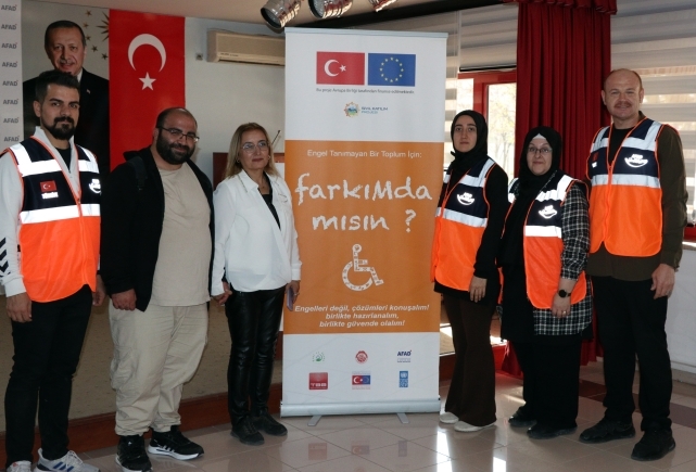 İscehisar’dan “FarkıMda mısın?” Projesine Katılım Sağlandı Avrupa Birliği (AB) tarafından finanse edilen ve Birleşmiş Milletler Kalkınma Programı (UNDP) kapsamında Afyonkarahisar Valiliği himayelerinde yürütülen proje, İscehisar Kaymakamlığı, İscehisar Belediye Başkanlığı ve İscehisar İlçe Millî Eğitim Müdürlüğü destekleriyle hayata geçirildi.Afyonkarahisar İl Afet ve Acil Durum Müdürlüğü (AFAD) ev sahipliğinde düzenlenen eğitime,İscehisar Belediyesi personeli,İlçe Millî Eğitim Müdürlüğü personeli, engelli bireyler ve gönüllüler katılım sağladı.Programda, AFAD uzmanları tarafından katılımcılara, teorik ve uygulamalı eğitimler verildi.Belediye Başkanımız Seyhan Kılınçarslan, “Engelli bireylerin afetlere karşı daha dirençli hale gelmesini amaçlayan projenin hayata gecirilmesinde emeği geçen herkese teşekkür ediyorum. İscehisar Belediyesi olarak sosyal sorumluluk projelerine olan desteğimiz devam edecek.